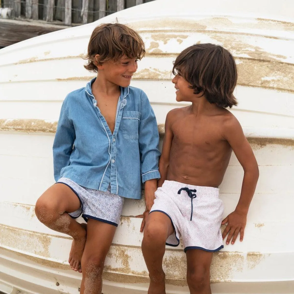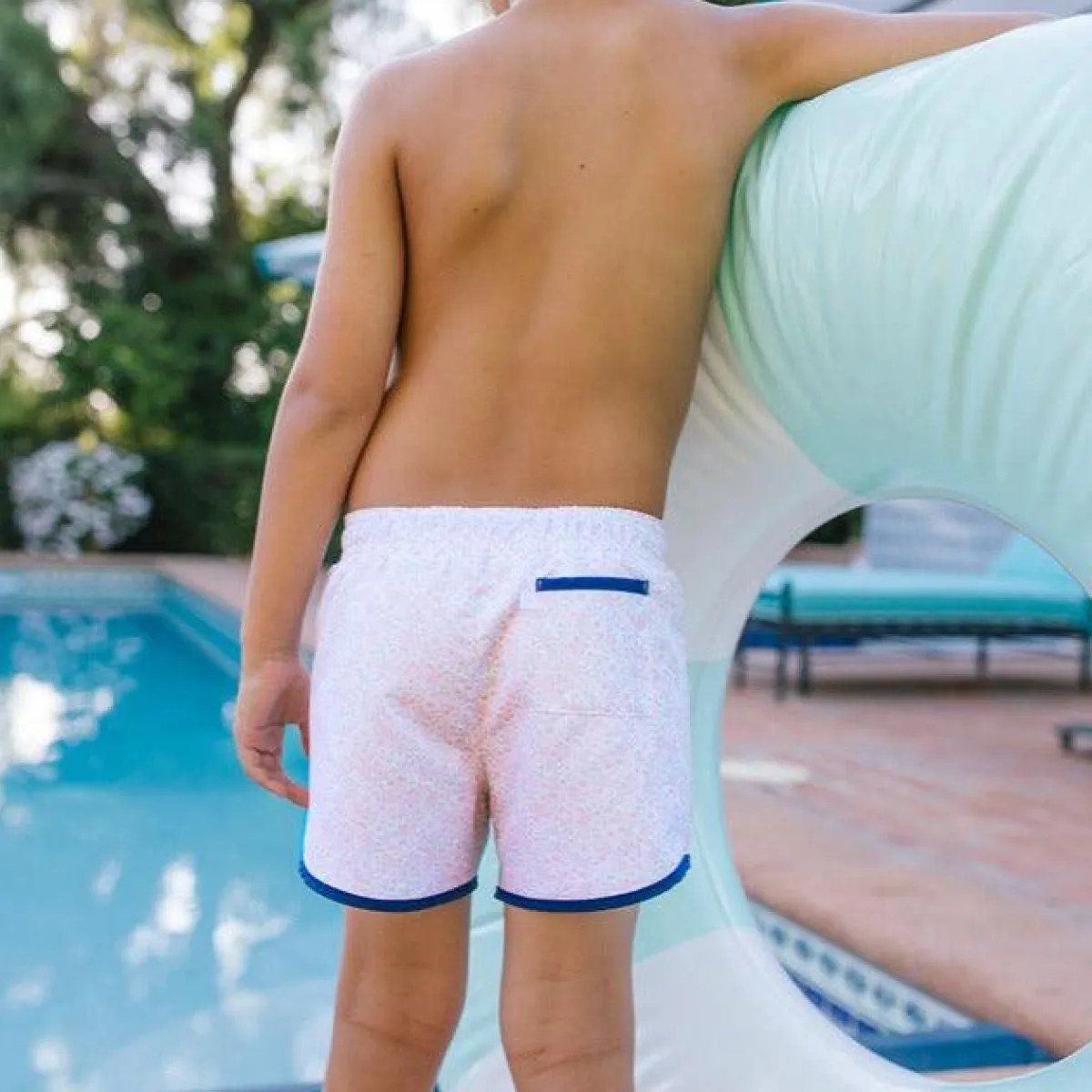 One Of Our Best Sellers! This Boy’s Boardshort Comes Updated In A Lush Floral With Contrast Navy Binding + Drawstring Cord, Hitting At The Perfect Length For Style And Function. Elastic Waistband And An Inside Stretch Liner Add To The Comfort And Mobility. Perfect For Any Activity!Note: We Strongly Advise Against Using Aerosol Sunscreens, Which Contain Chemicals That May Stain Suits.