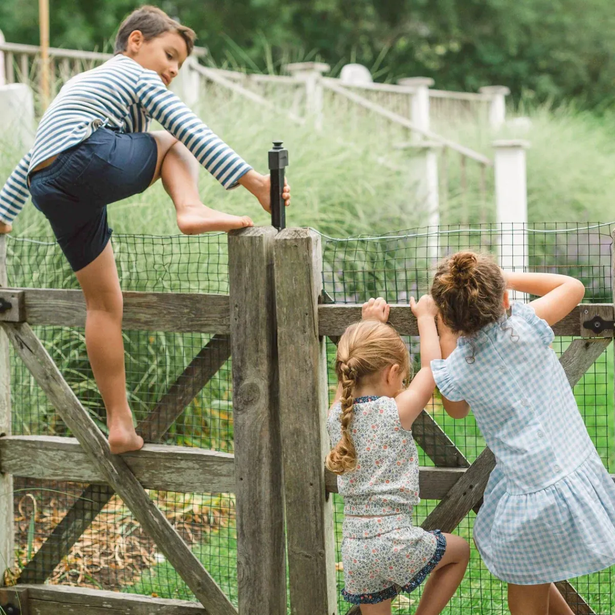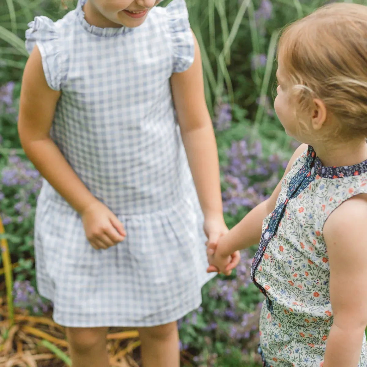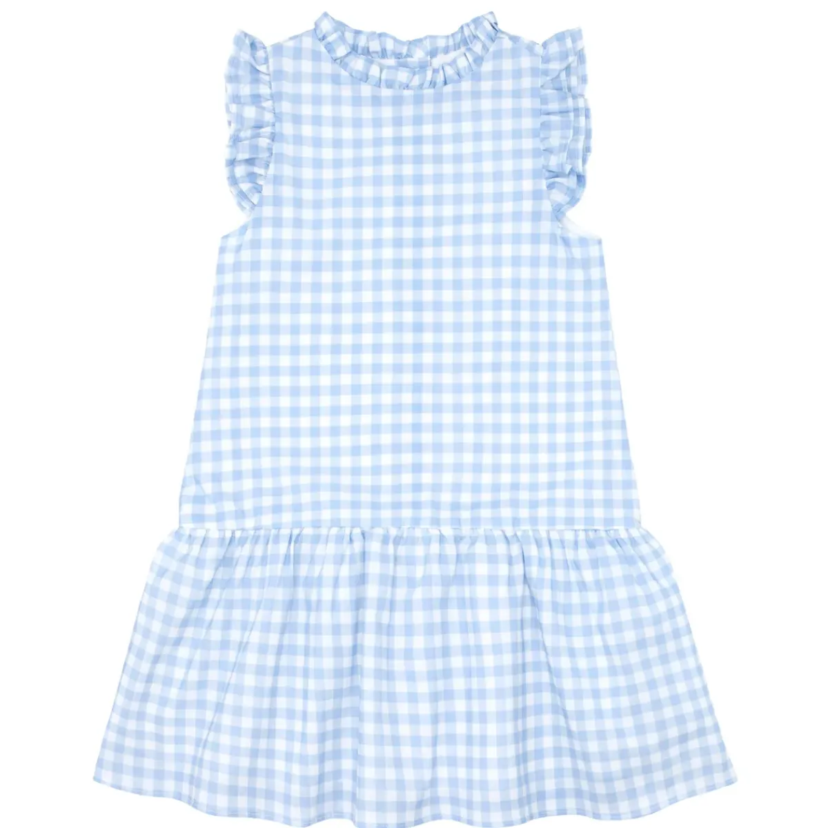 A New Sweet Silhouette For Girls! Designed With A High, Ruffled Neck, Cap Sleeve, Button Back And Dropped Waist, This Timeless Dress In Our Best-Selling Blue Gingham Print Is Perfect For A Season Of Summering.
