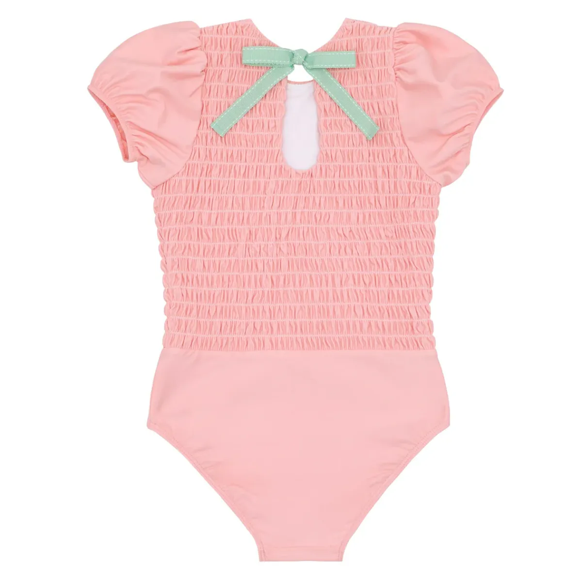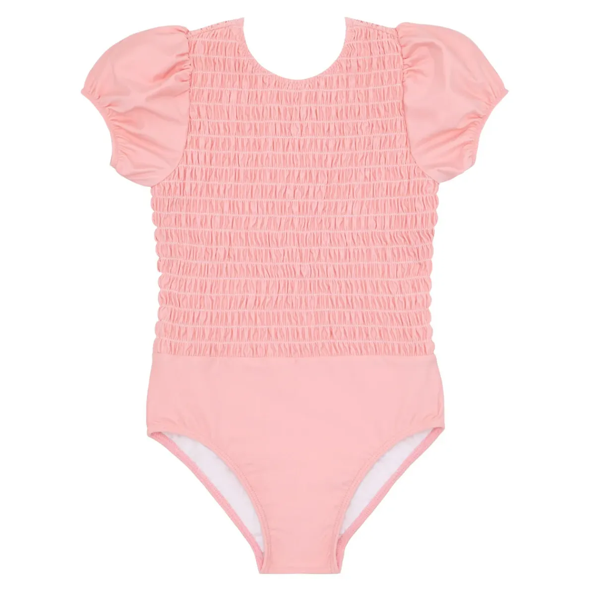 For This Brand-New Style For Girls, We Incorporated Beloved Details From Your All-Time Favorites. A Smocked Torso For Comfort, A Puff Cap Sleeve For Coverage And A Keyhole Back For Easy Changes Make This A Go-To. Available Here In Solid Sorbet Pink, It’s The Perfect Play-All-Day Suit Your Little One Will Love As Much As You Do! Note: We Strongly Advise Against Using Aerosol Sunscreens, Which Contain Chemicals