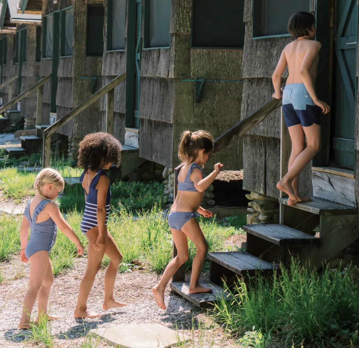 Our Iconic Minnow One Piece! This European Pinafore-Style One Piece Comes In Classic Navy Gingham With A Front And Back …