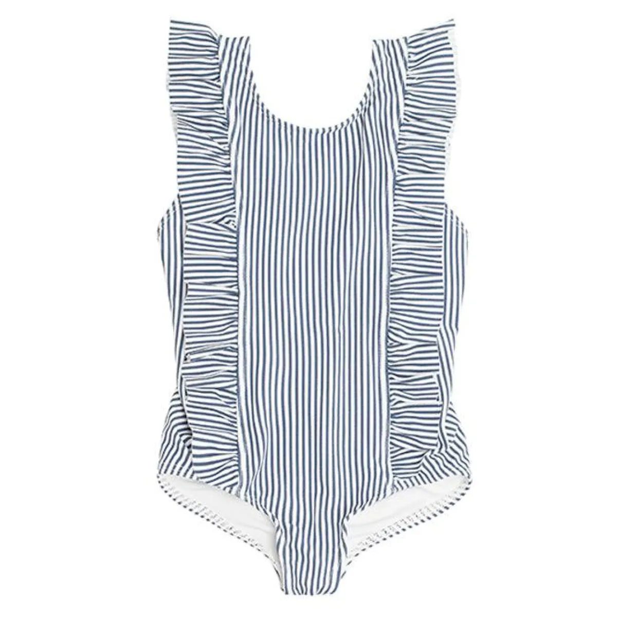 minnow Girls Ruffle One Piece | Swim Navy Stripe Discount