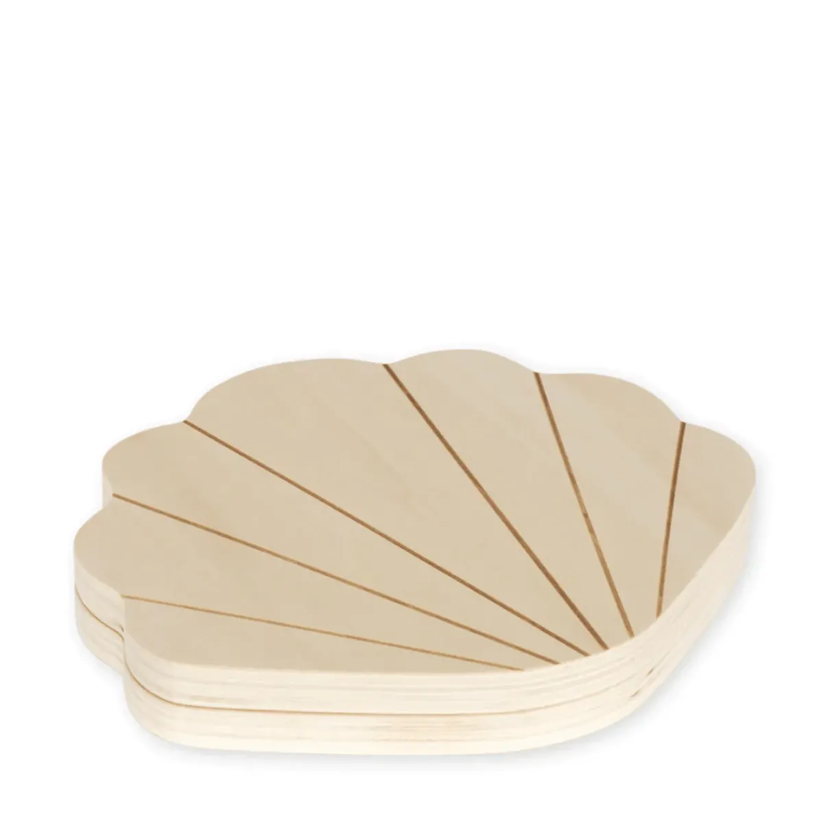 Puzzle Made With A Sustainably Sourced Beechwood Frame And Pinewood Blocks Painted With Non-Toxic Water-Based Paint. The Frame Is Shaped Like A Clam With Various Sea-Animals Underneath.Age + 12 Months