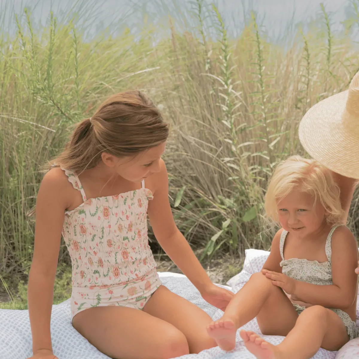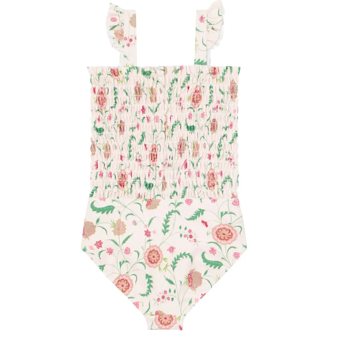 One Of Our Favorite Girls Silhouettes Is Updated Here With A Soft Ruffle Strap. Featuring Thoughtful Smocked Details On A One Piece Maillot, This Best Seller Is Equal Parts Chic And Sweet. Available In Our Cloister Botanical Print From Sister Parish, This Suit Has A Ruffled Neckline With Self Straps. Ready For Fun In The Sun! Note: We Strongly Advise Against Using Aerosol Sunscreens, Which Contain Chemicals That May Stain Suits.