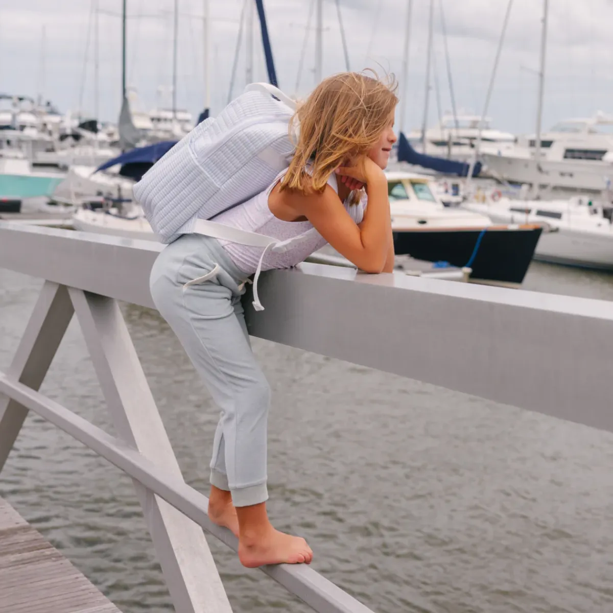 This Cozy Quilted Backpack Is Made With Your On-The-Go Lifestyle In Mind. Whether You’Re At The Beach, The Airport, Or The Classroom, The Padded Shoulder Straps And Convenient Top-Carry Handles Make It The Perfect Companion For Every Adventure.Spacious Lined Interior, Two Side Pockets And A Zippered Front Pocket Provide Quick Access To All Your Essentials. In Our Signature Powder Blue Stripe, It’s Both Stylish And Functional. Add Monogramming For A Personalized Touch!