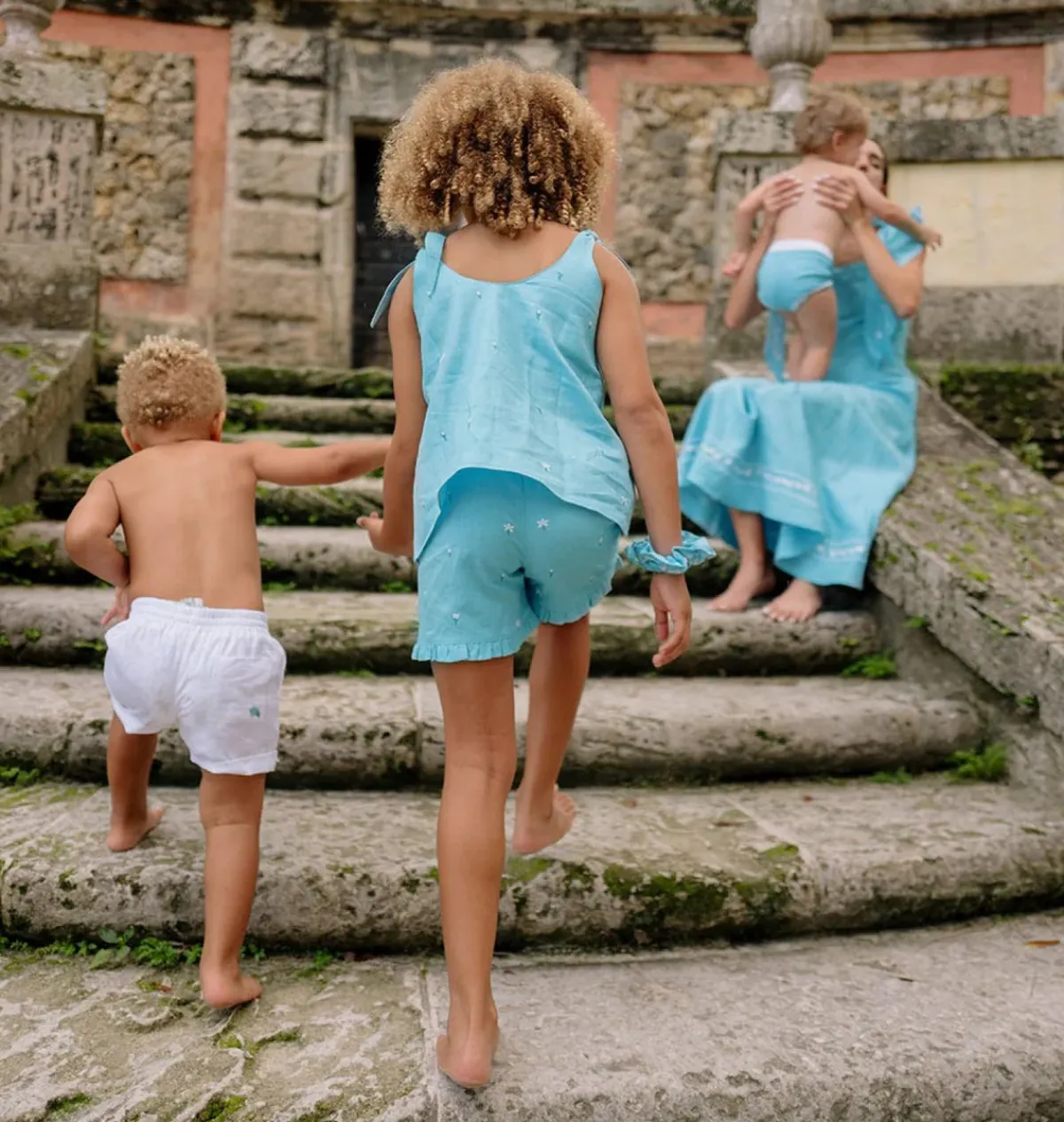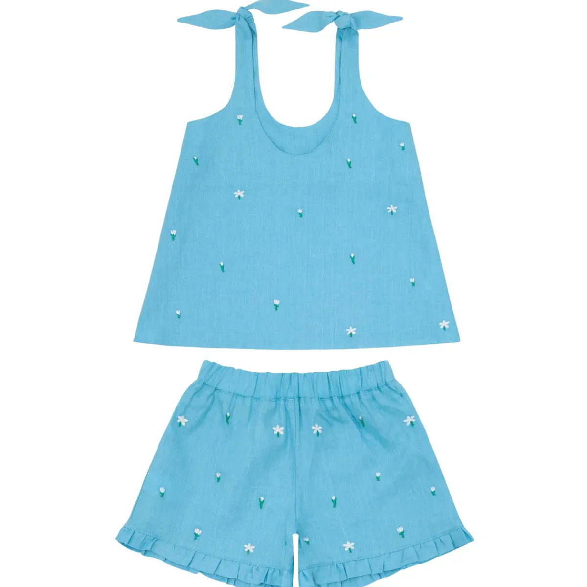 minnow X Fanm Mon Girl’s Tie Knot Short Set Lagoon Fashion
